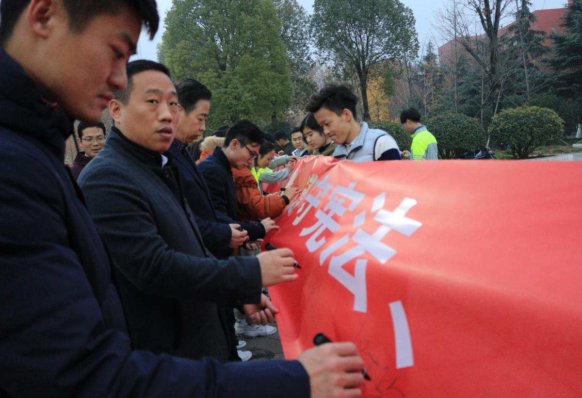 为增强全体师生对我国宪法的认识,增强法治观念,营造“尊崇宪法、学习宪法、遵守宪法、维护宪法、运用宪法”的良好氛围,2018年12月3日,由许昌学院法政学院主办,法政学院法学会承办的宪法日宣传誓师大会暨启动仪式在弘毅广场隆重举行。法政学院党总支书记唐战立、团总支负责人兼法学会指导老师孙晨赫等出席本次誓师大会,法学会全体成员及各院系师生代表参加。