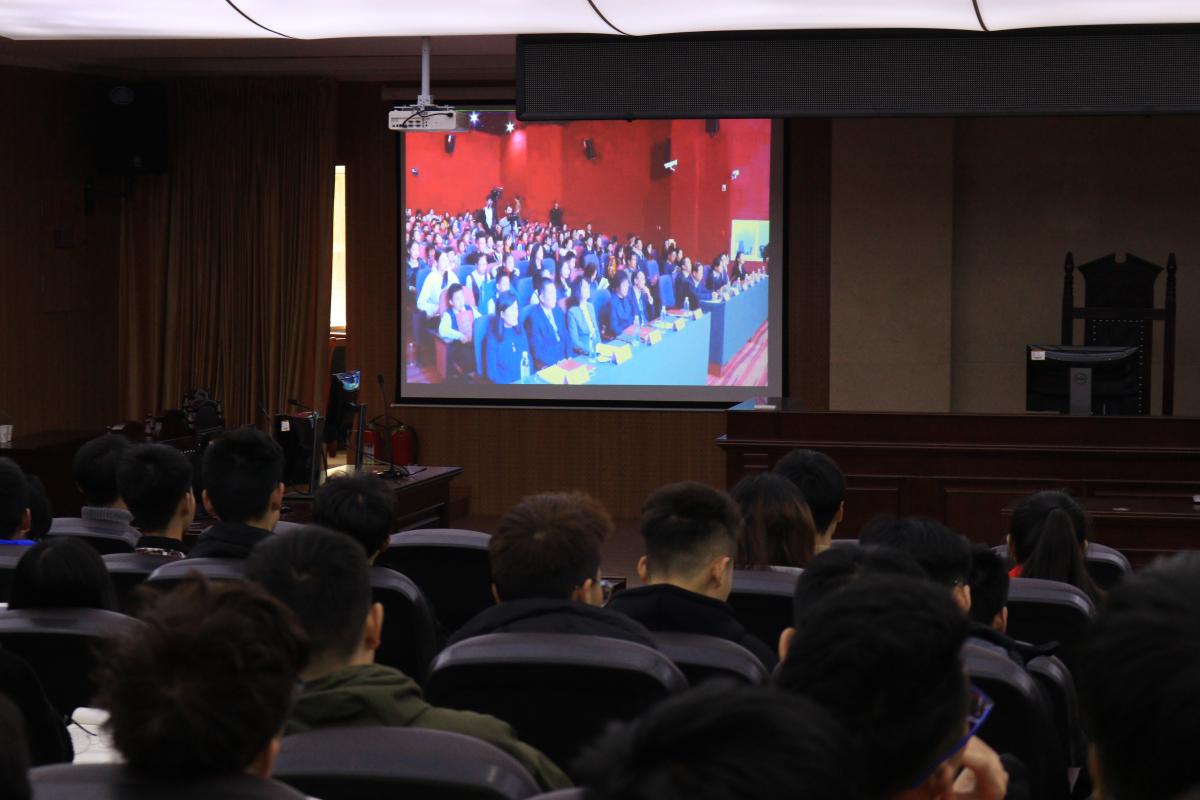 活动伊始,柴老师明确指出推动当前法制工作的重要性,并对当前法制建设状况进行简要概括。随后,进行观影活动,与会人员开始观看中央卫视的普法直播。在观影活动中,同学们跟随直播进行了庄严的宪法条例宣读活动。在普法直播接近尾声时,大家对宪法又有了新的认识,更加深入地了解了我国法治社会的现状。
