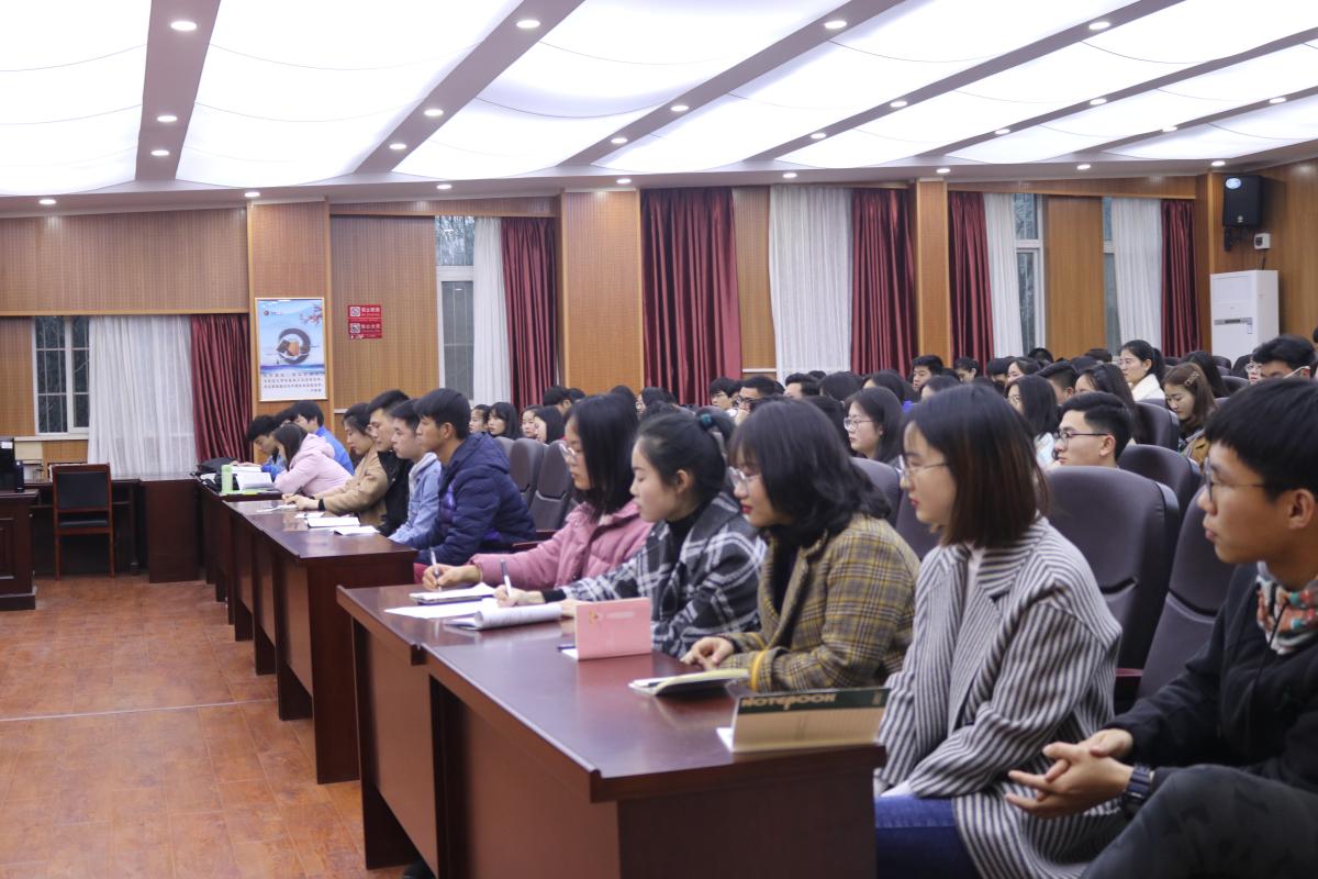2019年3月3日下午6时,法政学院团总支学生会于C合二模拟法庭成功召开2018-2019学年第二学期第一次例会。会议由法政学院团总支副书记马原,学生会主席张腾岳主持,团总支学生会全体学生干部到场聆听。