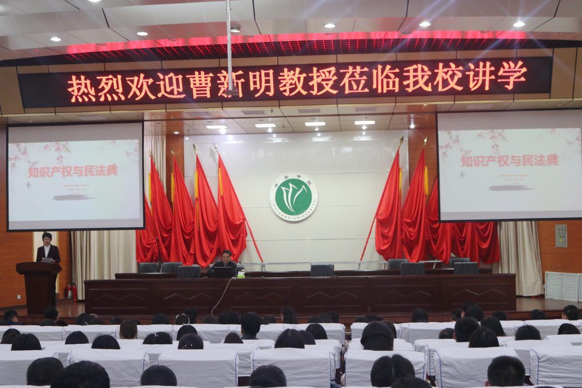 4月15日,中南财经政法大学教授、博士生导师曹新明教授应邀至我校学术报告厅作“知识产权与民法典编纂”主题讲座。17法本全体同学参加、聆听了此次讲座。讲座由法政学院院长崔秀花教授主持。