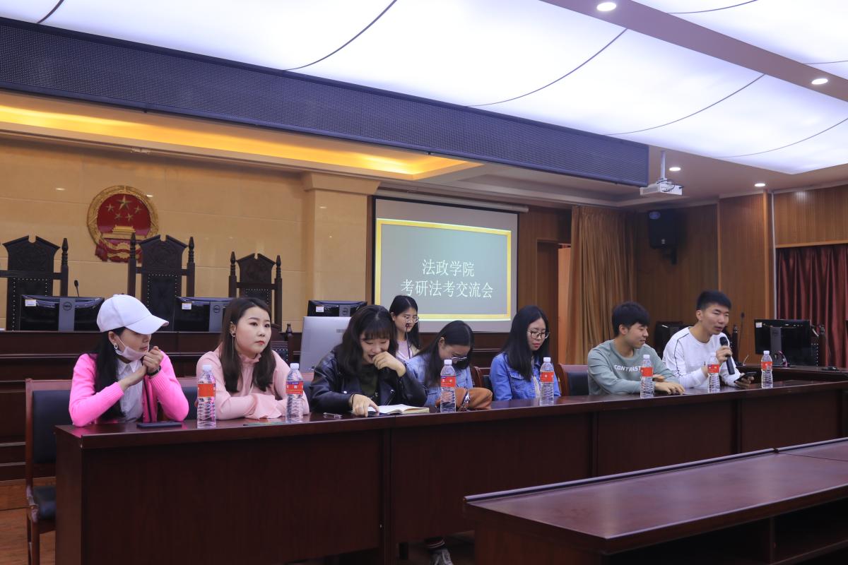 为了进一步提高我院学生的考研法考热情,明确考研法考目标,掌握相关考研法考技巧,2019年5月8日上午10点,法政学院2019年考研法考交流会在C合二模拟法庭成功召开。本次交流会由团总支负责人苏芳老师主持,法政学院学习部组织承办,我院2015级7名考研法考优秀学生做经验分享,2016、2017级法本学生参加了此次交流会。