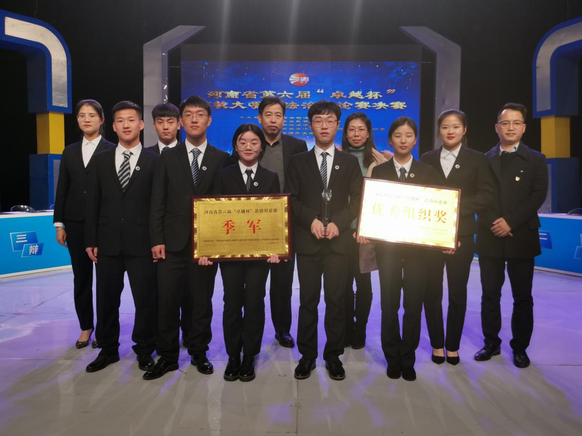 11月27日至28日,由河南省司法厅、河南省普法教育工作领导小组办公室、河南省法学会联合会主办、河南师范大学承办的“卓越杯”大学生法治辩论赛在郑州展开。河南省20所卓越法律人才教育培训基地高校均派出代表队参加了此次比赛。经过激烈角逐,我院代表队荣获本届辩论赛季军,荣获“优秀组织奖”,孙敬良老师获得“优秀指导老师”称号,17级本科生辩手田静怡获得“最佳辩手”称号。