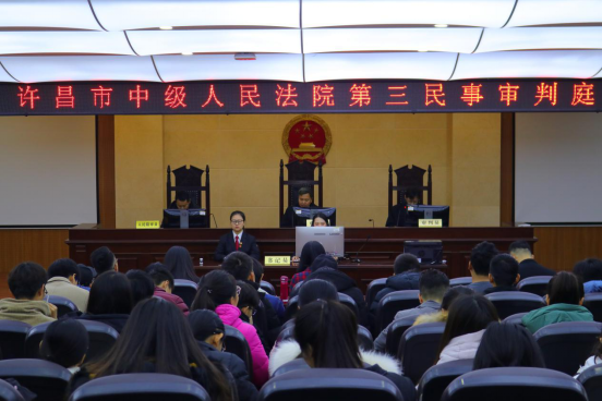 为了加深同学们对知识产权理论知识的理解,也让同学们真正参与到法律实践中,提升综合能力。2019年12月16日上午9时,法政学院于C合二模拟法庭组织学生旁听了由许昌市中级人民法院第三民事审判庭在我院开展的商标侵权纠纷案庭审。我院副院长赵丽敏、知识产权法教研室主任孙敬良等六位老师出席此次旁听活动,17级全体同学、19级知识产权同学到场学习。