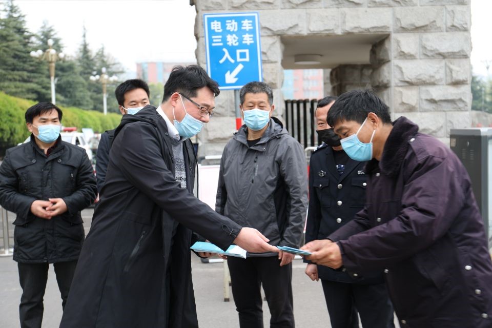2020年3月31日下午,在法政学院党总支书记唐战立教授、党总支副书记黄春建的带领下,法政学院疫情防控普法宣讲队先后来到学校校园与家属院连接处的小东门、学校南大门和家属院物业办公室,开展疫情防控法律法规宣讲活动。在宣讲活动中,队员们就疫情防控期间可能涉及的法律知识以及法律法规对疫情防控的保障支撑问题进行了认真而详细地讲解。讲解后,法政学院党总支还向学校保卫处、家属院物业办公室分别赠送了《新冠状病毒疫情防控法律法规须知》小册子。