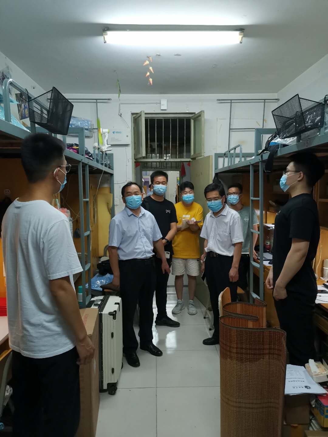 受疫情影响,今年的毕业季和以往相比显得与众不同。经过学生申请、学院审核及健康检测和行程追踪,第二批返校的毕业生们相继来到了学校。6月10日晚上,我院党总支书记孟凡根、院长周耀宏、党总支副书记黄春建、副院长赵丽敏以及全体辅导员老师分两组分别深入到男女生宿舍,走访看望2020届毕业生,为即将踏上人生新征程的毕业生们送去了亲切的问候与诚挚的祝福。