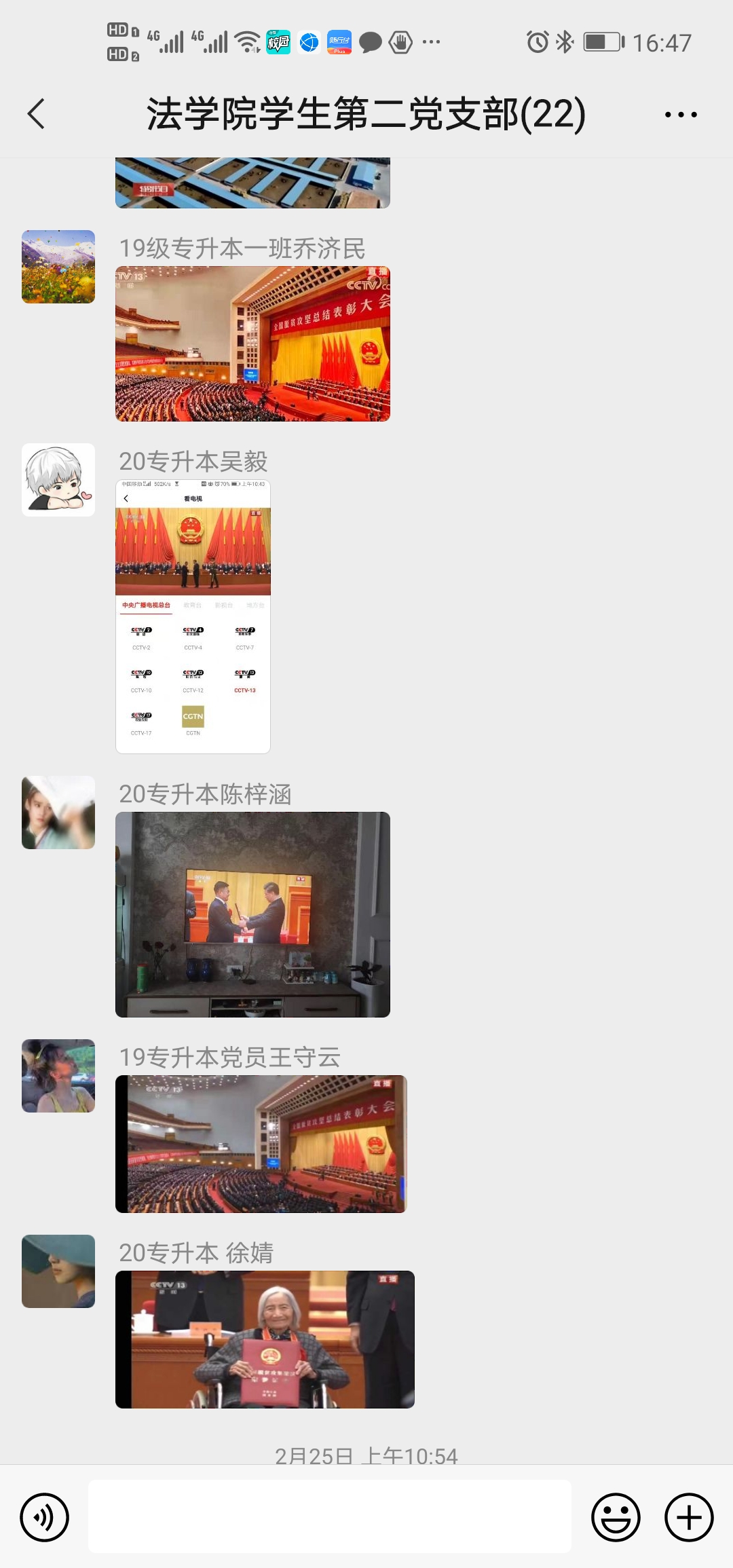 2月25日上午,我院学生第二党支部组织党员收看全国脱贫攻坚总结表彰大会直播,认真聆听习近平总书记的重要讲话。支部党员以自己的方式进行了收听收看。