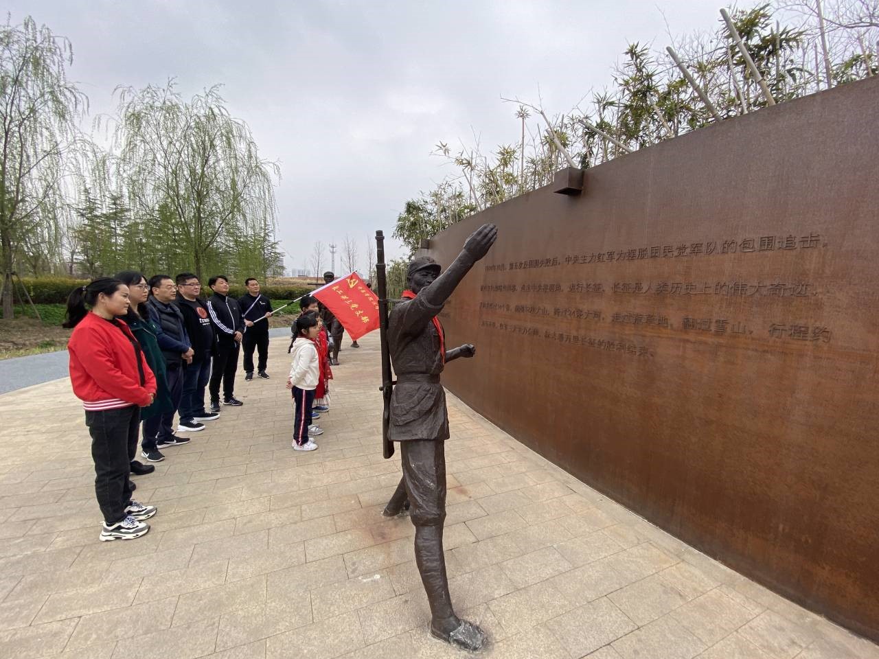 活动首先由少先队员举旗表明决心接受红色教育开始。随后,党员同志带领少先队员先后参观了涵盖南昌起义、抗日战争、解放战争、抗美援朝战争、改革开放等历史阶段的主题展点,在这些展现中国共产党光辉历程的展点中,少先队员们主动承担了知识宣读任务,并向英雄雕像和长征文化墙敬礼。党员同志则向少先队员耐心讲解了中国共产党带领全国人民进行革命和改革,建设繁荣富强新中国的伟大历程,并通过特级战斗英雄杨根思的故事和战壕、战斗机、坦克等红色元素向少先队员们宣扬了红色精神。活动最后,全体党员在支部书记尹晓兵的领誓下集体重温了入党誓词,大家用激昂、有力、庄严的誓词表达对党的拥护以及为共产主义事业奋斗终身的决心。