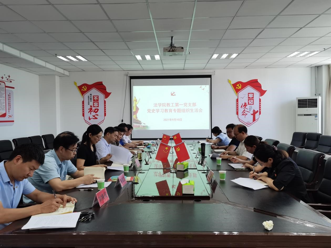 9月10日下午,我院教工第一党支部于法学院会议室1225室召开了党史学习教育专题组织生活会,会议由党支部书记冯振强同志主持。许昌学院党史学习教育第四巡回指导组组长王鸿政同志,指导组成员张志豪同志、秦静茹同志与会现场指导了本次会议。