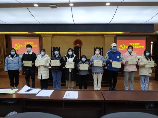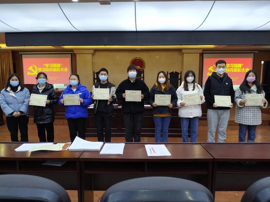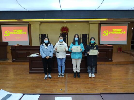 2022年3月20日,法学院学生第一党支部在C合二模拟法庭开展了表彰“学习强国”学习标兵主题党日活动。