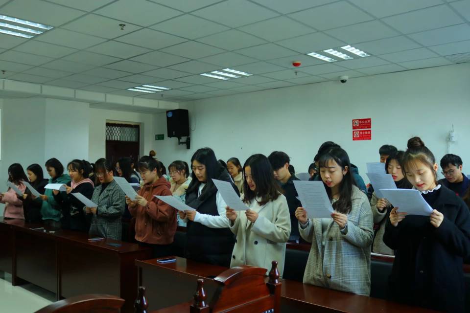 为普及宪法知识、加强宪法教育、弘扬宪法精神,增强学生们对宪法的认识,我院法学会联合社团部及18级各班学生代表于12月4日上午在文科综合楼717模拟仲裁庭观看“12.4国家宪法宣读直播”,并进行了宪法晨读活动。