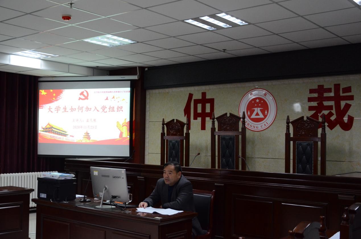 为了加深入党积极分子对党的认识,端正入党动机,坚定入党决心, 11月23日晚19时,我院党委书记孟凡根在文科综合楼717室讲授了以“大学生如何加入党组织”为主题的党课。我院分党校第24期入党积极分子党课培训班全体学员到场学习。