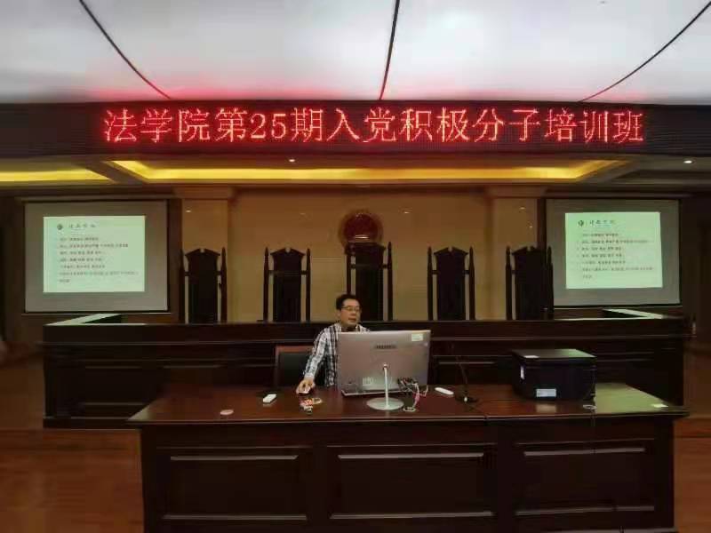 为继承党的优良传统,弘扬伟大民族精神,进一步帮助同学们加强对中国优秀传统文化的理解,4月27日晚6时,以“百年来党对中国优秀传统文化的继承与发展历程”为主题的第25期入党积极分子培训课在模拟法庭顺利开展。此次党课特邀许昌学院干部教育培训中心主任兼校党委组织部副部长王彦副教授主讲,我院第25期入党积极分子培训班全体学员到场学习。