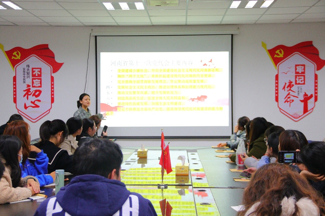 为深入学习贯彻河南省第十一次党代会的精神,勇担建设现代化河南的历史使命。11月8日,我院在E-1225开展以“东风浩荡新时代,奋勇争先新征程”为主题的团课培训。本期团课由我院团委学生副书记张馨悦同学主讲,我院第38期分团课全体成员参加学习。