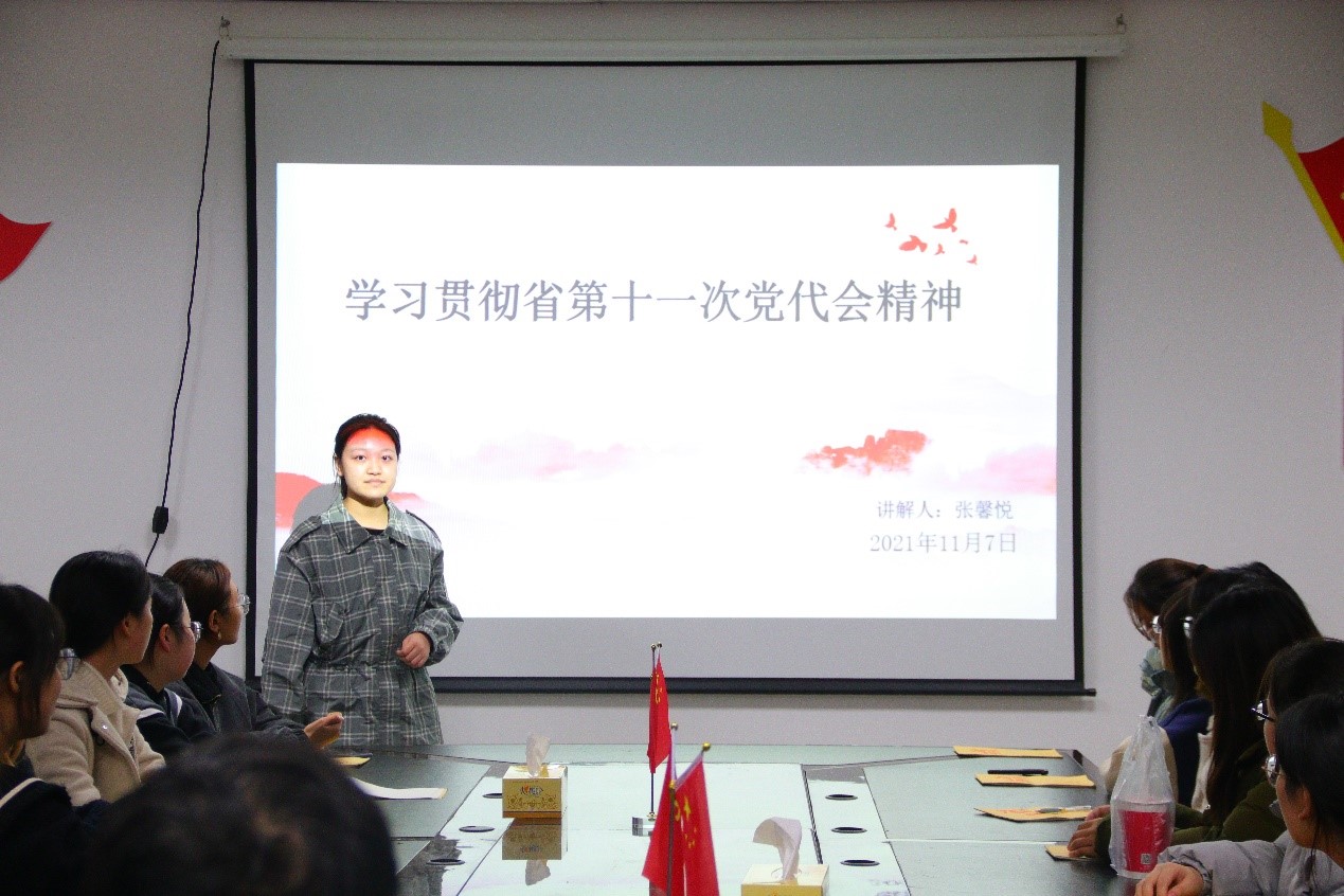 课上,张馨悦首先带领全体学员观看了省第十一次党代会的相关视频。随后,张馨悦从“全面建成小康社会取得的主要成果”、“胸怀‘两个大局’,勇敢担起建设现代化河南的历史使命”以及“六个大方向”三方面对河南省第十一次党代会的内容展开了详细的阐述。