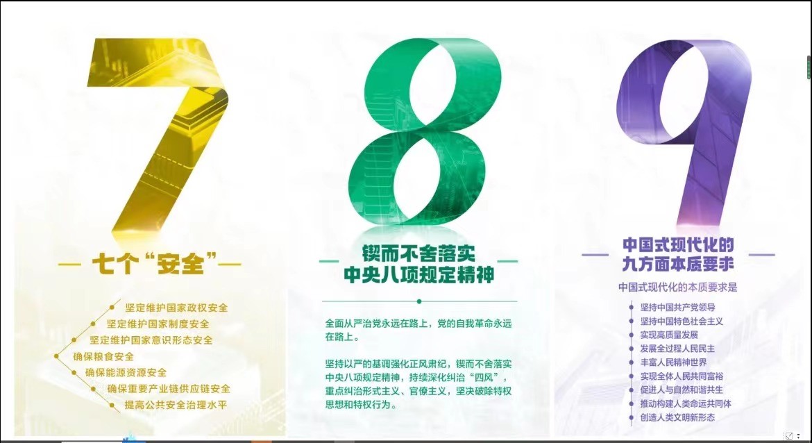 刘毅飞首先介绍了中国共产党第二十次全国代表大会。随后通过详细解读习近平总书记在会上所作的报告,进一步加深同学们对党的二十大报告内容和精神的了解与认识。最后,刘毅飞从青年大学生的角度出发,呼吁同学们以青春之笔绘就奋斗蓝图。