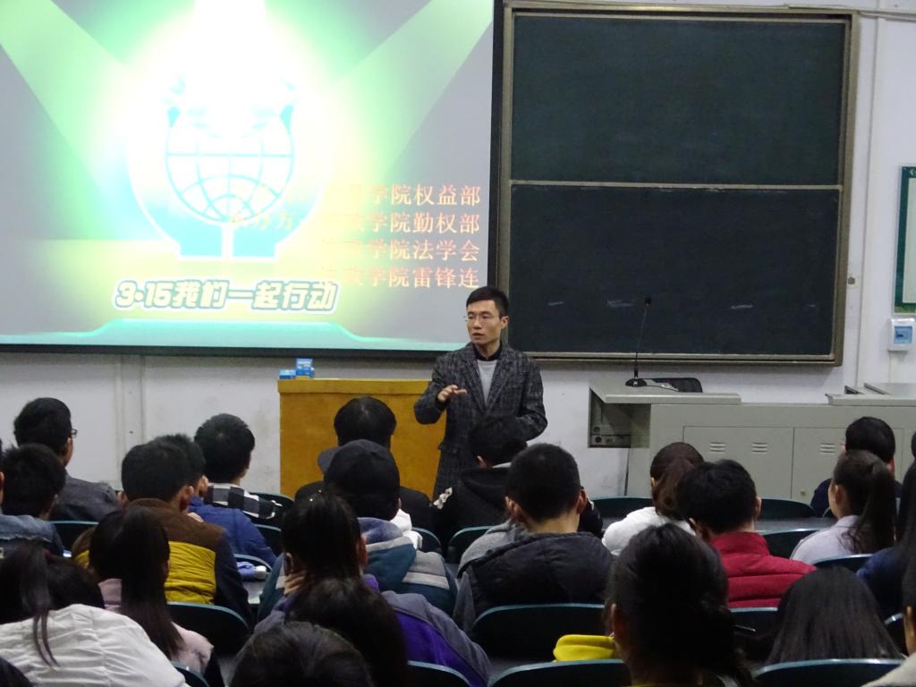 3月19日晚7时,由许昌学院权益部主办,法政学院勤权部、法学会、雷锋连承办的“3.15我们一起行动”消费者权益保护知识讲座于A合十七顺利举办。法政学院院长崔秀花、团总支负责人孙晨赫出席了此次活动,我校广大法律爱好者及我院16级全体学生认真聆听了此次讲座。