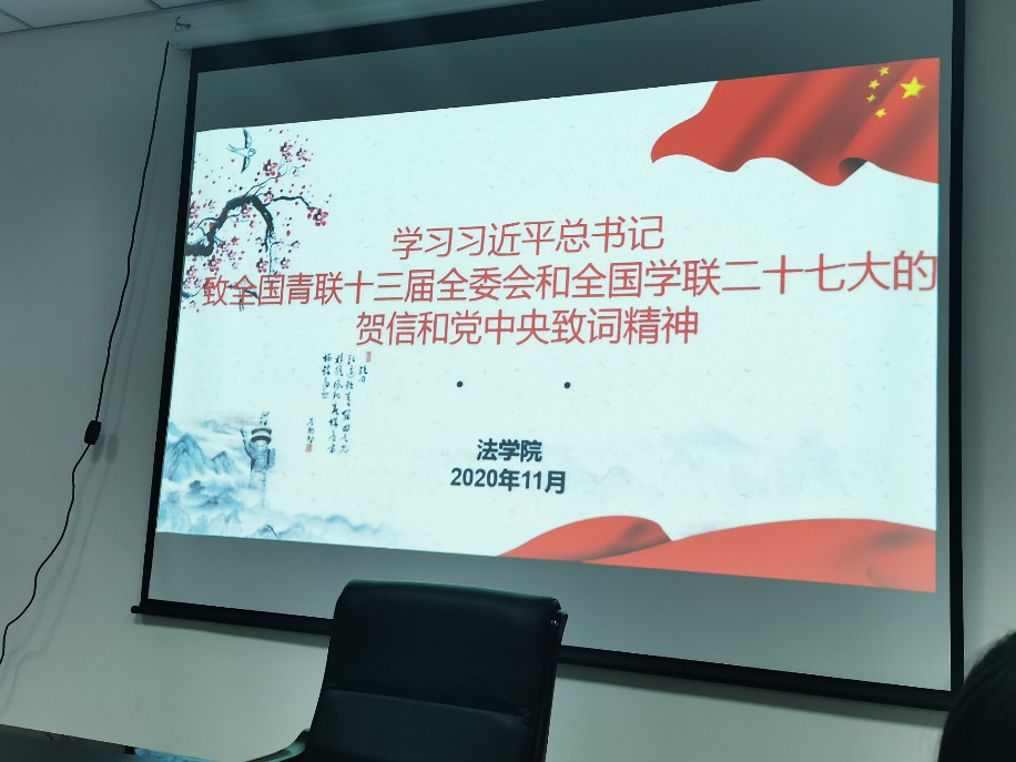 11月16日晚,我院于在文综楼1225开展了以“学习习近平总书记致全国青联十三届全委会和全国学联二十七大的贺信和党中央致辞精神”为主题的集中学习。本次学习由我院团委副书记杨晓丽老师主讲,学生干部到场聆听。