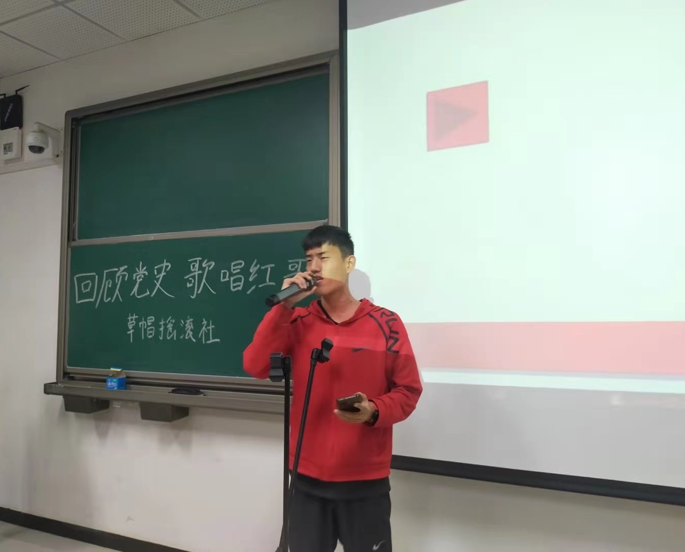 为庆祝中国共产党成立100周年,回顾党的光辉历程,讴歌党的丰功伟绩。2021年4月23日晚7点,由草帽摇滚社团承办的“歌唱红歌,回顾党史”活动在文科综合楼107举办,活动吸引了我院近两百名学生参与。本次活动由社团社长邵冰倩主持。
