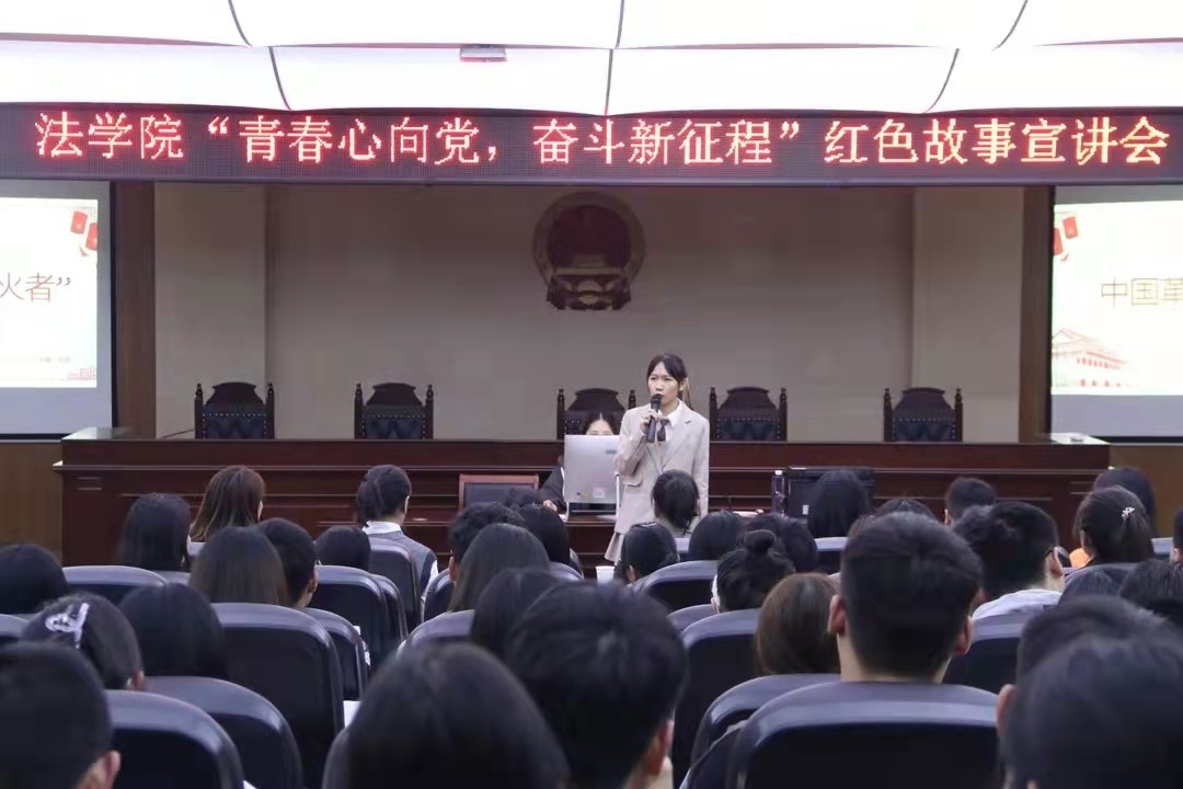为进一步唱响时代主旋律,传承和发扬红色革命精神,践行社会主义核心价值观,以向上向善的精神风貌庆祝建党100周年,2021年10月15日,我院在C合二模拟法庭开展了“青春心向党,奋斗新征程”红色故事宣讲会。我院团委副书记杨晓丽老师、21级辅导员李艳玲老师出席本次活动,21级学生到场聆听。