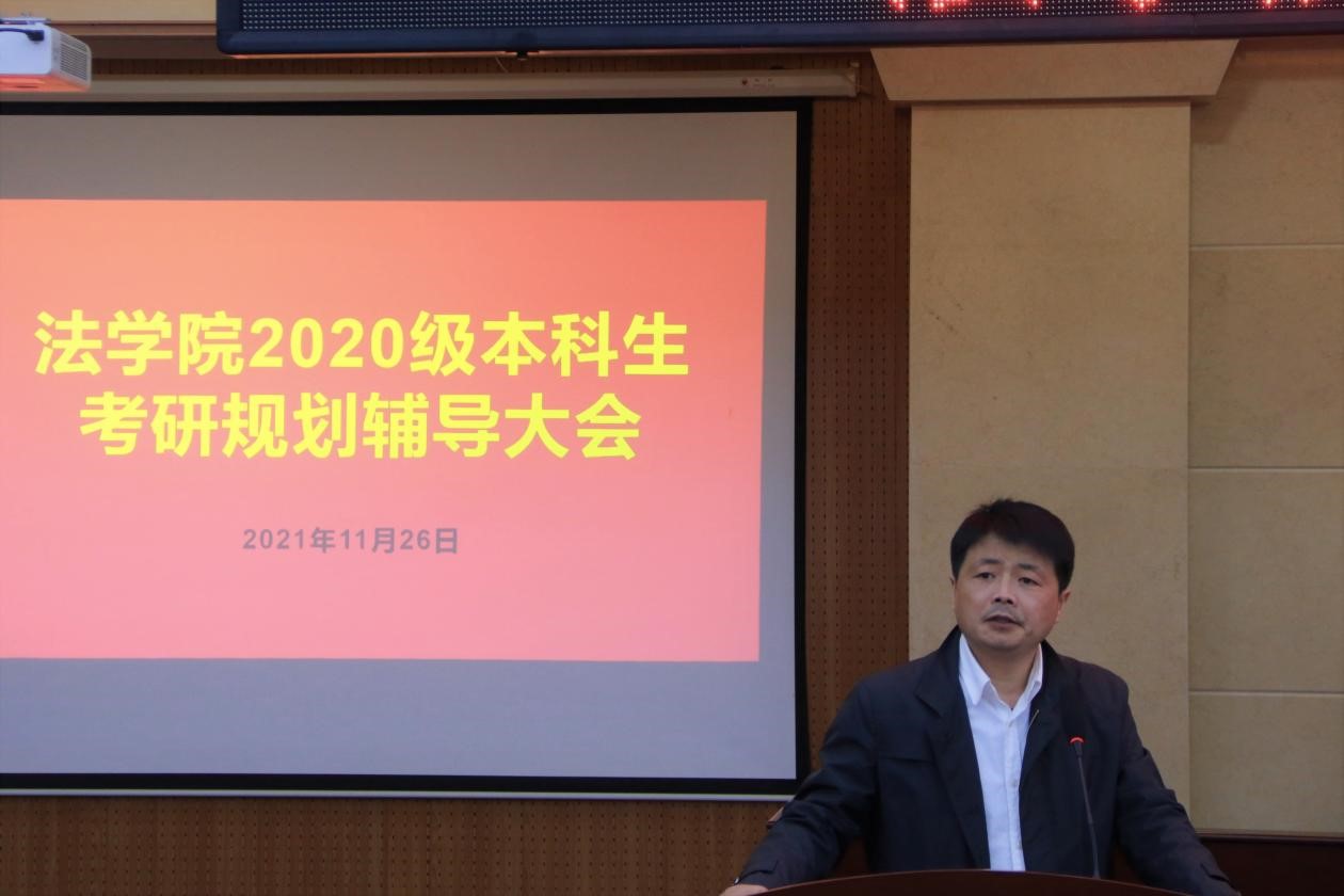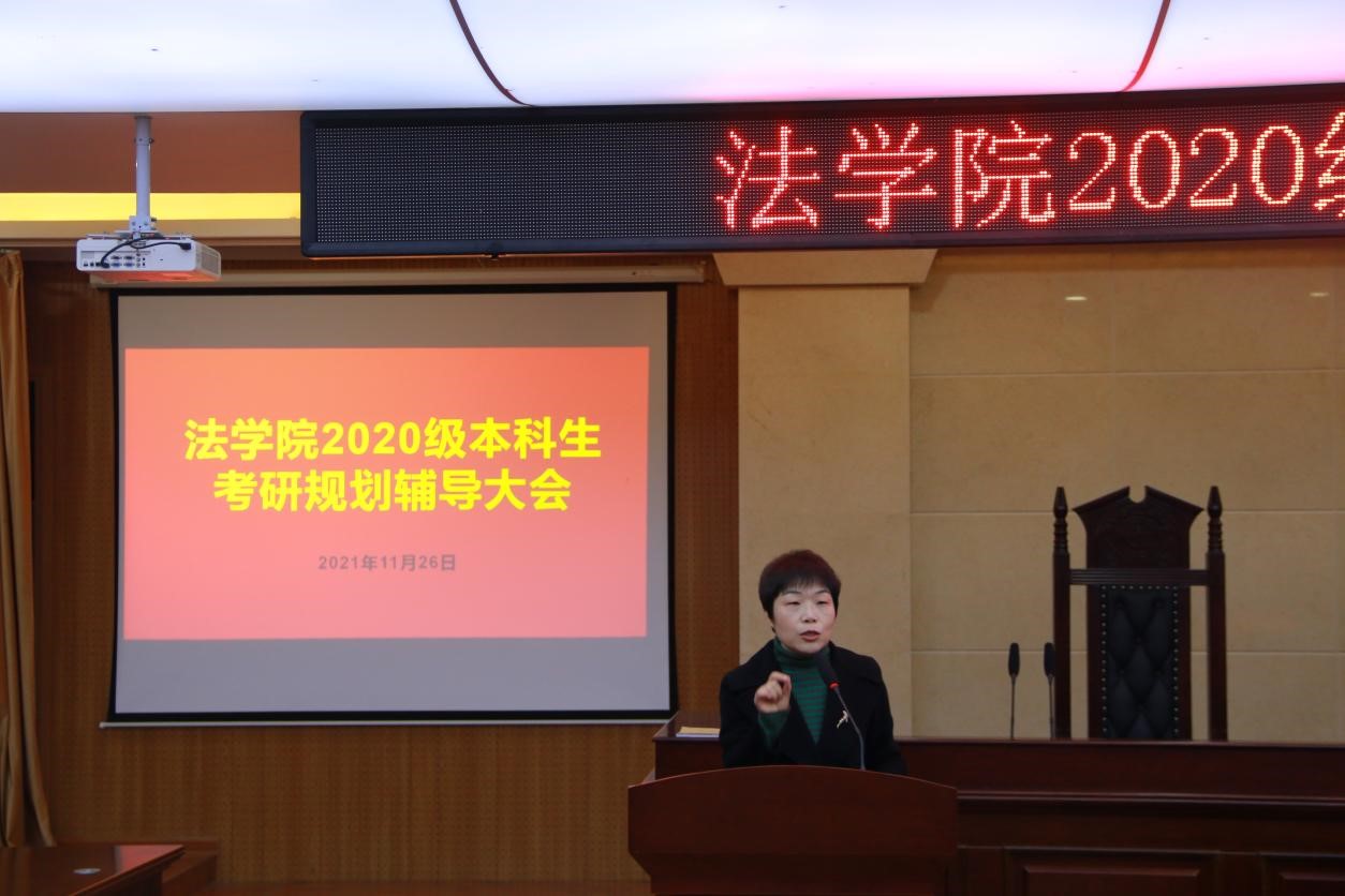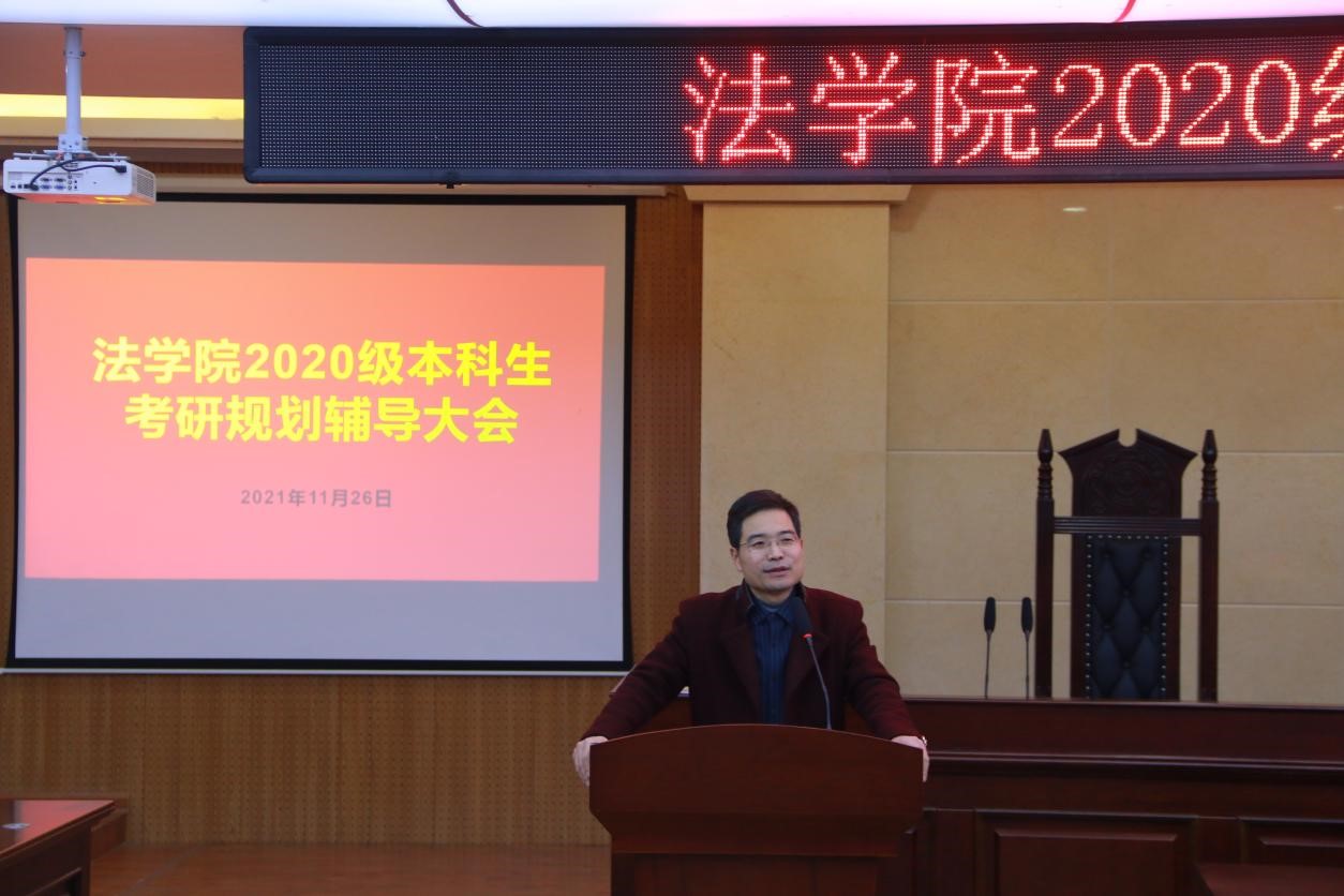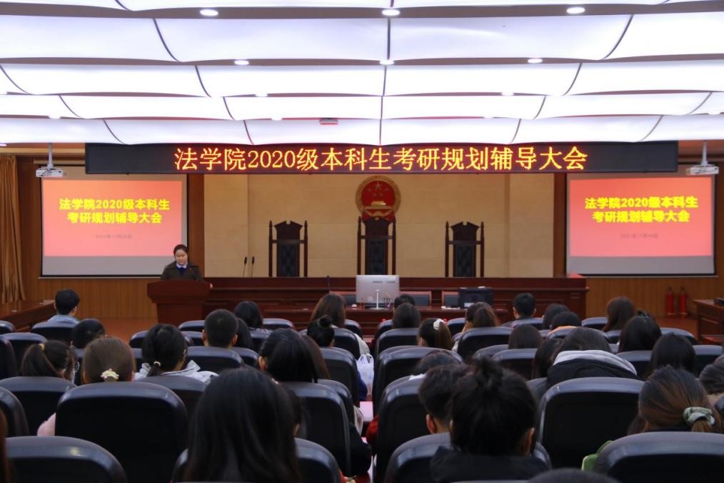2021年11月26日晚7时,我院于C合二模拟法庭举办2020级本科生考研规划辅导大会。院长周耀宏、副院长赵丽敏、副院长王忠灿、2020级辅导员李静雅老师、闻锋老师出席本次活动,2020级全体同学到场聆听。