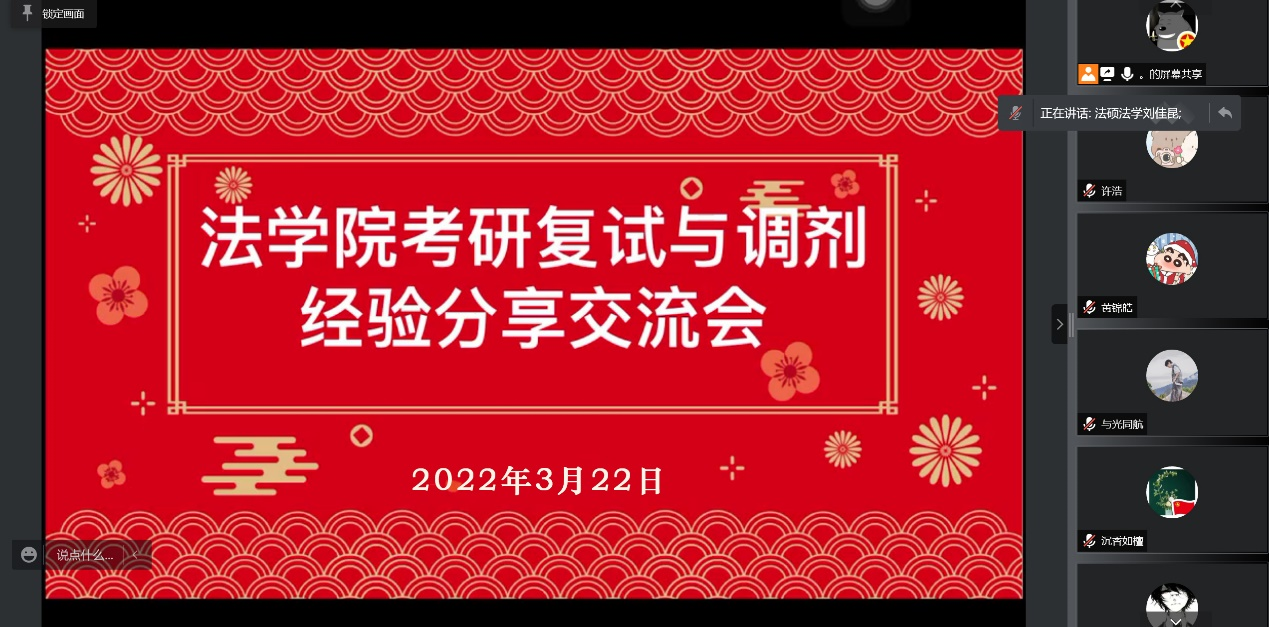 2022年3月22日晚6点,我院通过“腾讯会议”在线举行了考研复试与调剂经验分享交流会,邀请到往届考研成功的五位优秀毕业生为2022届考研复试同学分享考研复试及调剂经验。