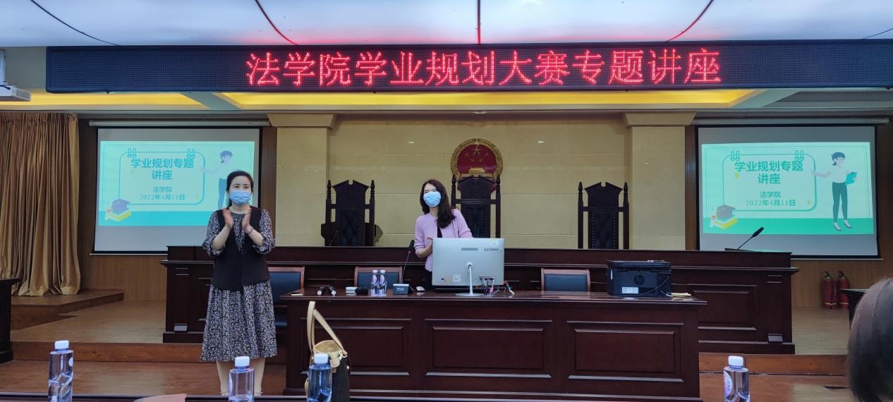 为进一步促进我院学生明确学业方向,帮助学生坚定理想信念、明确学习目标、激发学习动力、提高学习能力,激励学生专心向学、卓越成才,我院于4月11日上午在模拟法庭举办《大学生学业规划专题》讲座。讲座特邀科研处贾琳老师主讲,法学院党委副书记刘毅飞主持,部分班导师及全体21级学生参加。