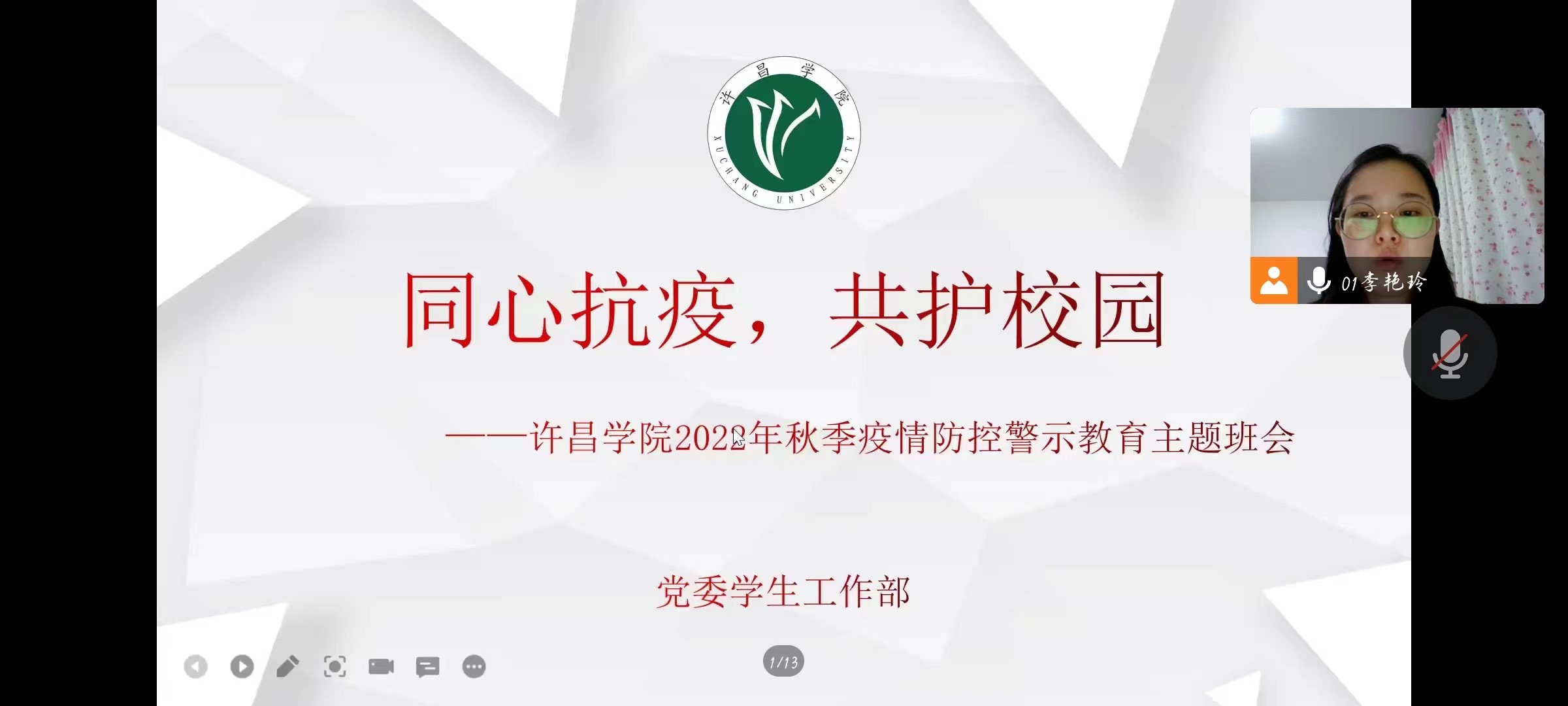 为深入贯彻习近平总书记关于新冠肺炎疫情防控工作的重要指示和重要讲话精神,落实教育部及属地疫情防控指挥部最新决策部署,全力守好校园疫情防控阵地,坚决防止校园疫情发生和蔓延,确保学生生命安全、身体健康和校园稳定。根据许昌学院《关于在全体学生中开展疫情防控警示教育主题班会的通知》等文件精神,我院于9月23日至25日期间,通过线上线下相结合等方式,由各年级辅导员主持,有序开展了主题教育活动。