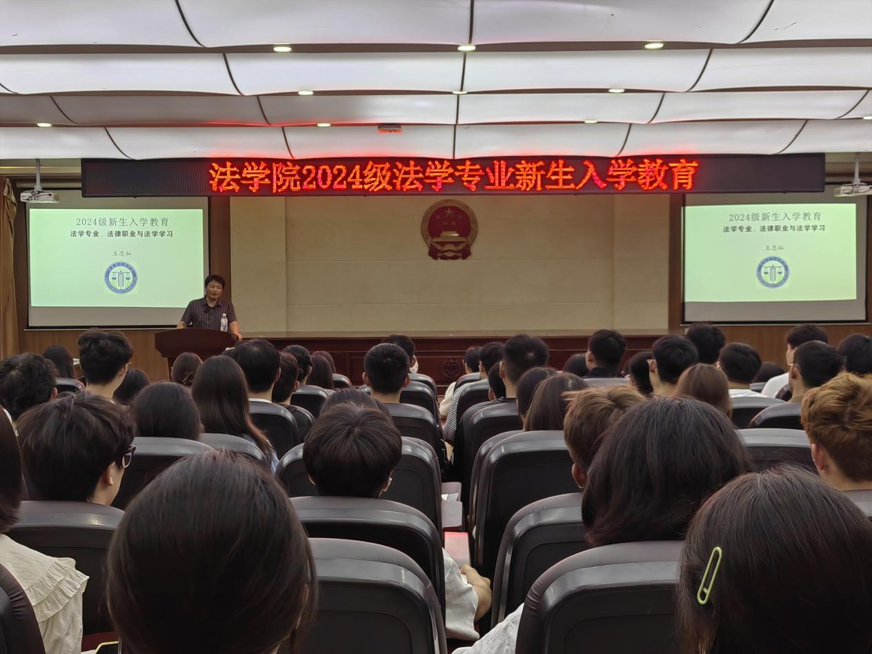 9月12日,院长王忠灿在C合2模拟法庭开展《法学专业、法律职业与法科学生的学业》主题讲座。他围绕“法学学科的含义”、“法学学习方法”、“法学使命”三大方面,从法学专业相关问题出发,结合理论知识深入分析,引导新生加深对法学专业的整体了解以及明确学习要求,同时教导全体新生将人文素养和道德素养排在首位,做一名德法兼修的法律人。