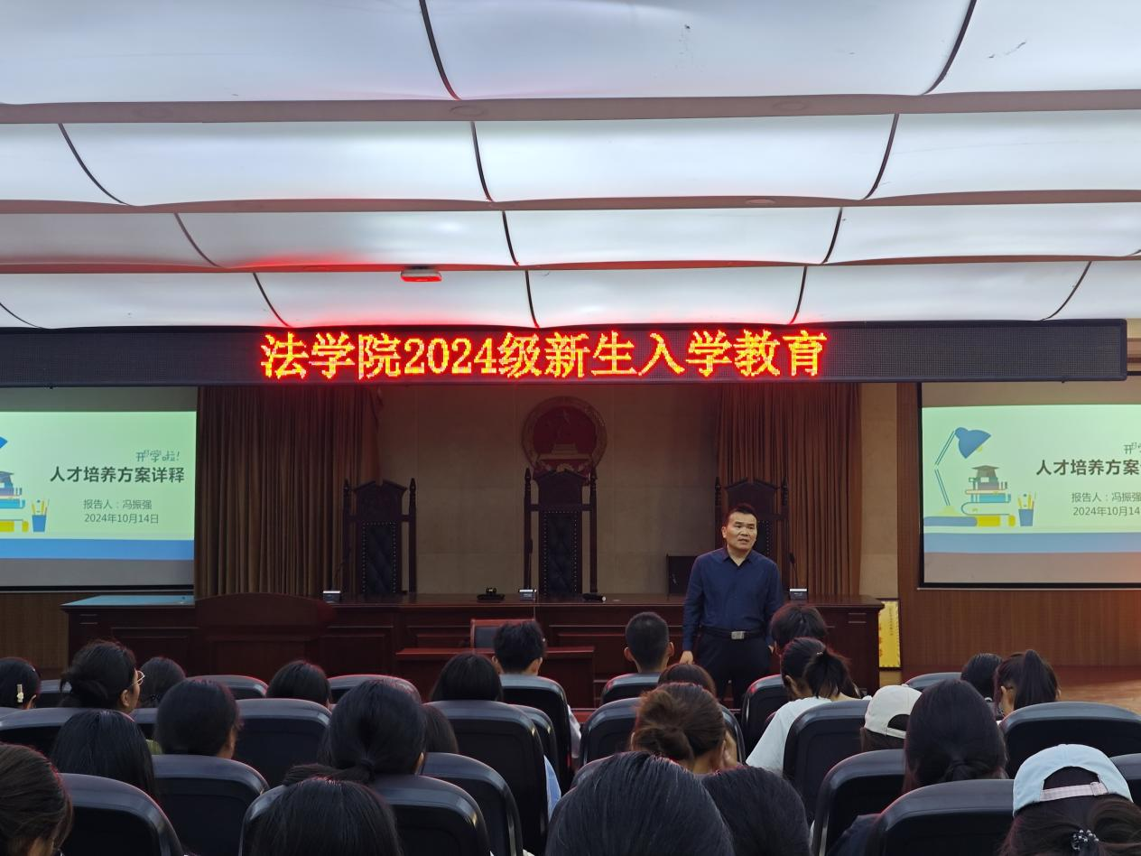 10月14日,副院长冯振强在C合2模拟法庭开展“人才培养方案详释”专题讲座。他详细介绍了人才培养方案和学业学分制度,强调新生应高度重视学分,积极主动参与各类课程,不断提升自己的学术水平。同时,他还强调法学生既要具备充足的专业理论知识,又要重视第二课堂,培养解决实际问题的能力,努力发展成为知识融合、技术集成的复合型人才。