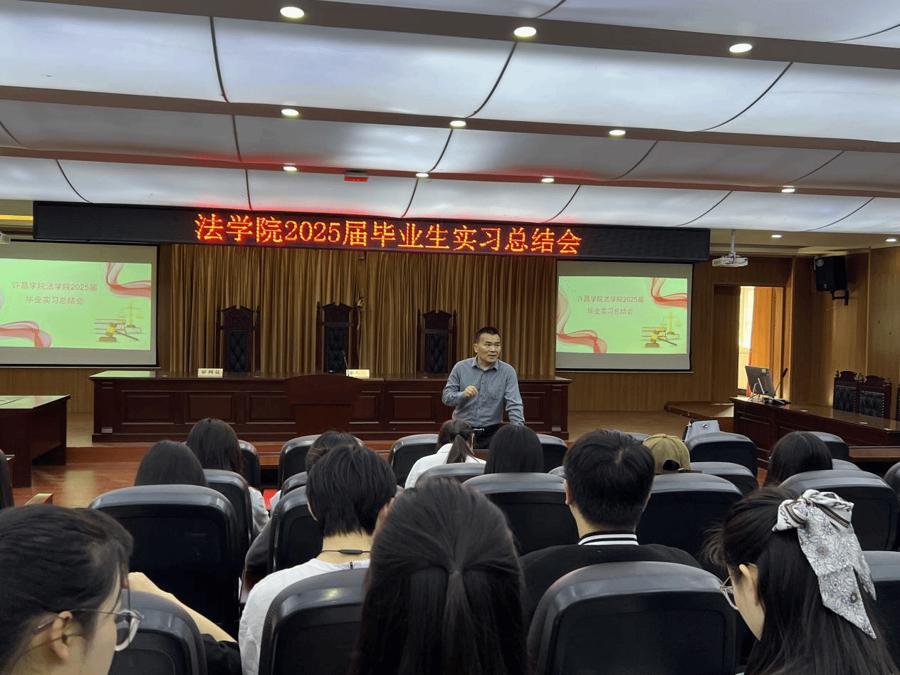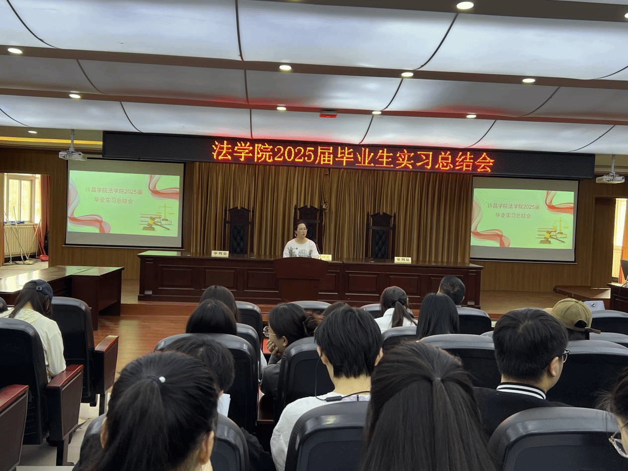 为总结实习经验、回顾实习成果,法学院于4月27日在C合二举行2025届毕业生实习总结大会。法学院副院长冯振强、实践教学教研室副主任郭蕊、2025届毕业生辅导员李艳玲及全体毕业生参加本次会议。
