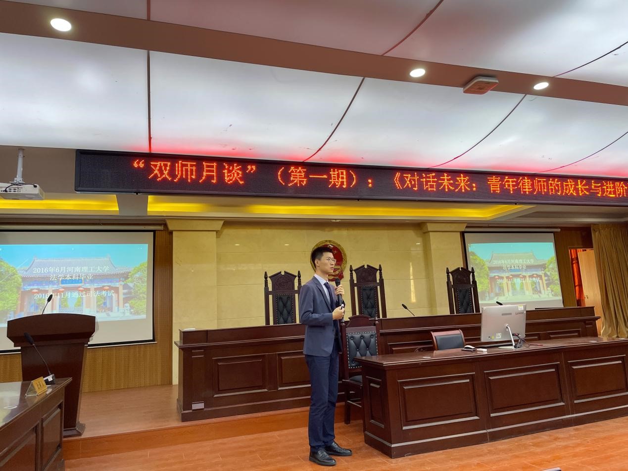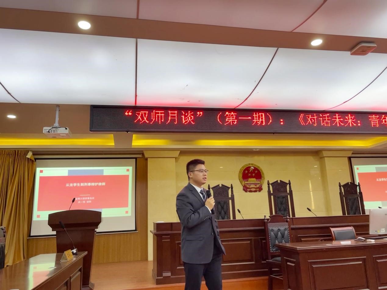 “双师月谈”主题分享活动,是我院对法学课堂“理论+实践”模式的一次新探索,通过邀请具有实务经验的教师、律师、法官、检察官等,与同学们面对面交流,有利于进一步将课堂知识与实践相结合,增强学生的实践能力,对提高学生就业竞争力、深入推进实施法治人才培养具有深远影响。