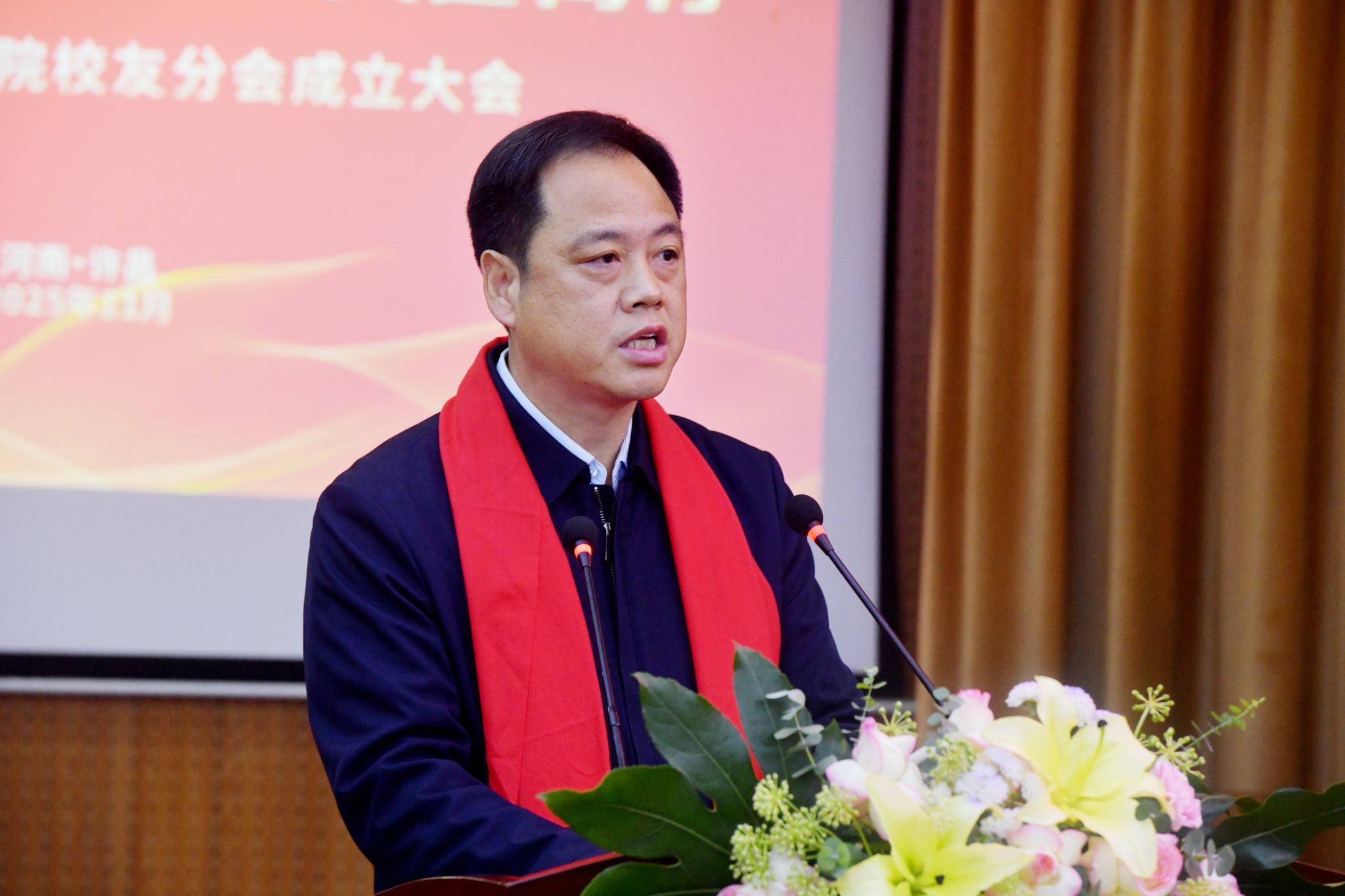 崔越在会上致辞。他指出,法学院的办学历史,是一部薪火相传、砥砺奋进的成长史。多年来,学院始终坚持“人才培养、科学研究、社会服务、文化传承与创新”的办学宗旨,秉持“政治建院、研教立院、人才强院、服务兴院、依法治院”的发展理念,围绕“崇德尚法、博学笃行”的院训,致力于培养新时代高素质应用型卓越法治人才。他表示,校友是学校最宝贵的财富,也是学校发展最可信赖的力量。校友们取得的成就是母校办学质量的最好证明,校友们的声音是母校最响亮的名片。法学院校友分会是连接母校与校友、校友与校友之间的坚固桥梁,是精神的家园、互助的平台和合作的舞台。他期望各位校友在未来能继续秉持母校赋予的专业素养与赤子之心,恪守职业道德,守护社会公平正义,在各自的岗位上绽放更加耀眼的光芒。